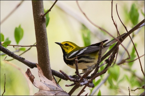 A Black-throated Green Warbler in early April. They usually don't come in this early.