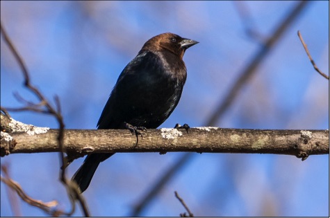 A male Brown-headed Cowbird. It was part of a mixed flock that included Common Grackles and male Red-winged Blackbirds.