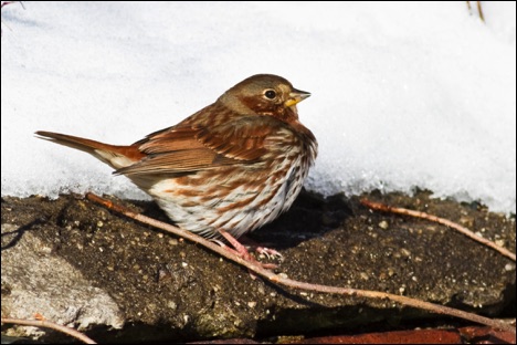 A Fox Sparrow in early March.While many sparrows are confusing, the Fox Sparrow is distinctive.